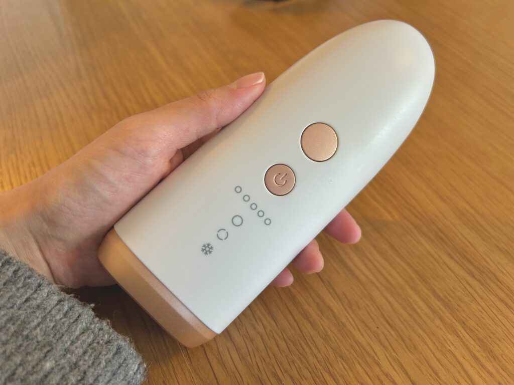 照射の前後で同時に肌を冷やしながら使えるので、光脱毛にありがちな熱さや刺激を感じにくく、脱毛器がはじめての人でも使いやすくなっています。