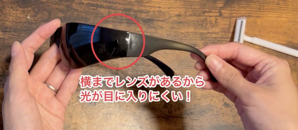 YUNDOO脱毛器のサングラスは、横までレンズがあり、光が目に入りにくい設計でした。
