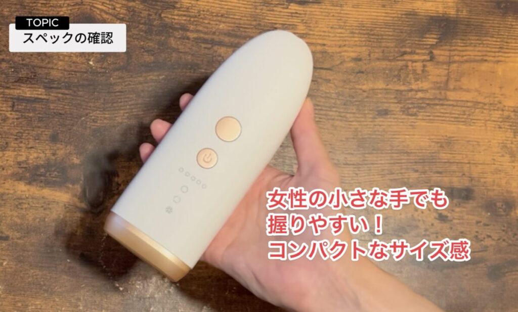 一方で、照射範囲が小さい分、細かい部分にも当てやすく、ひざ・ひじ・指まわりなどの部分脱毛や仕上げには使いやすいという側面もあります。
